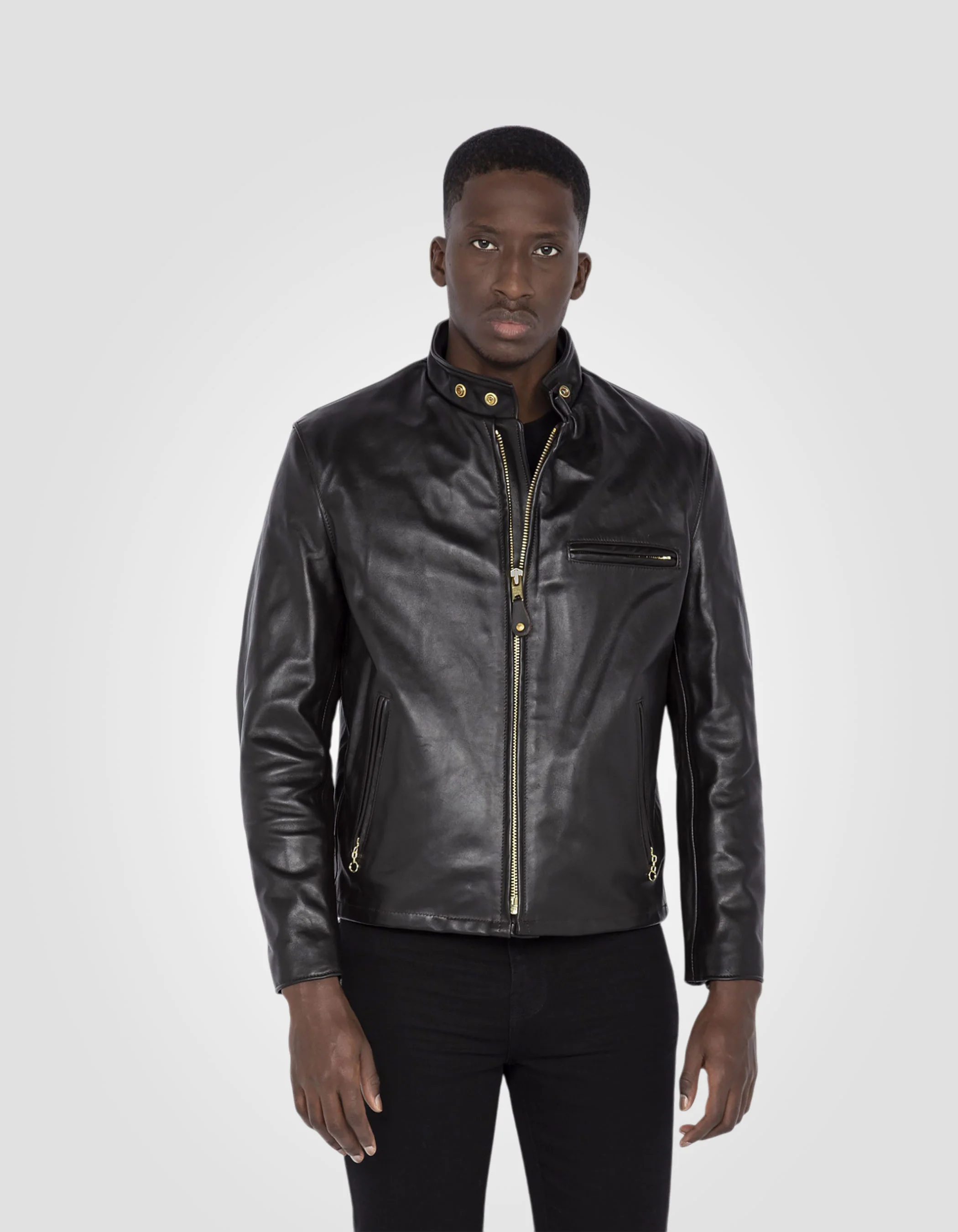 Confectionné dans la plus pure tradition américaine, ce blouson café racer made in USA aux lignes simples et épurées apporte une allure décontractée. Figure incontournable du dressing masculin, ce modèle en cuir de vachette épais et résistant donnera du caractère à toutes vos tenues.