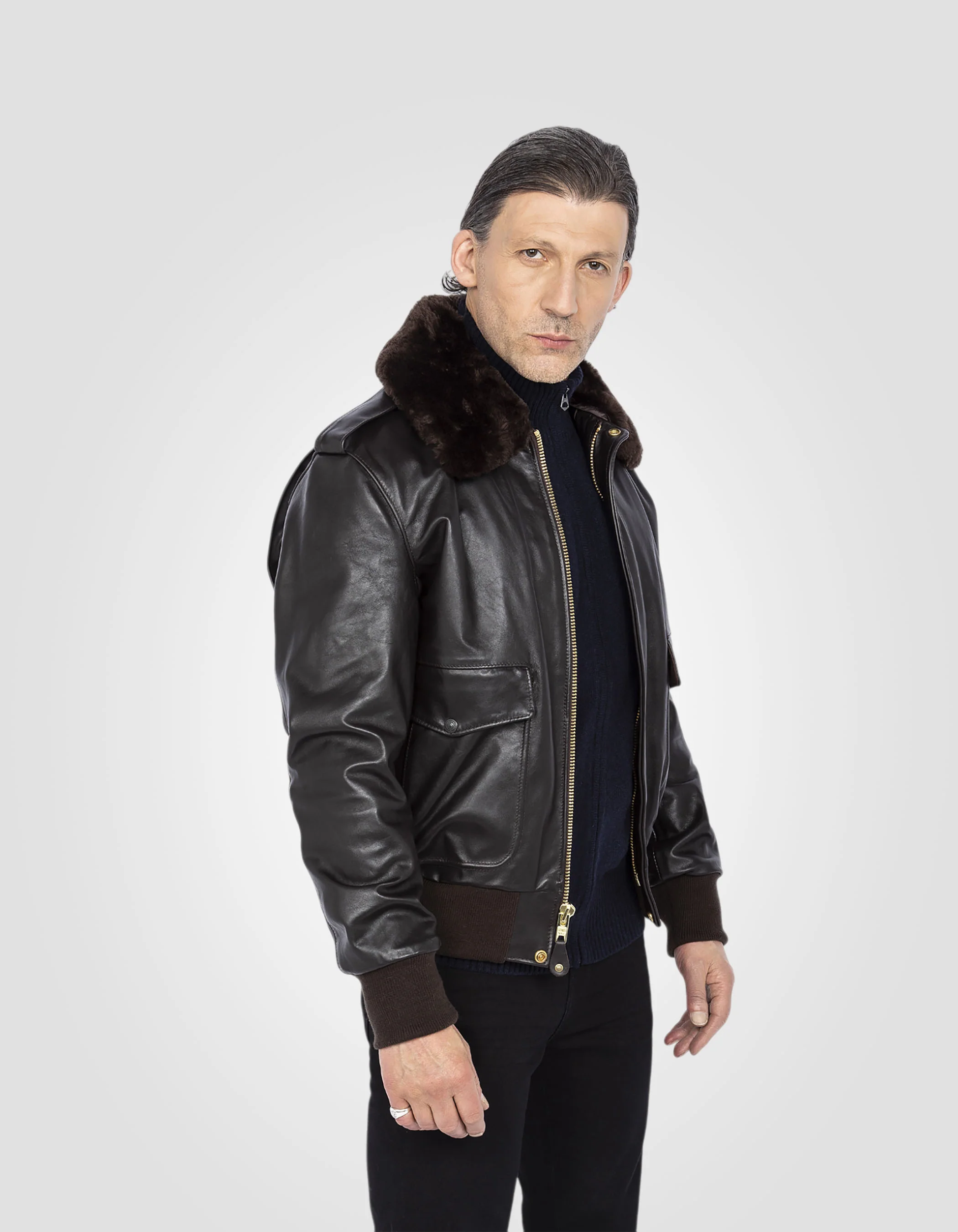 Blouson pilote marron type A-2 mythique USA, cuir de vachette