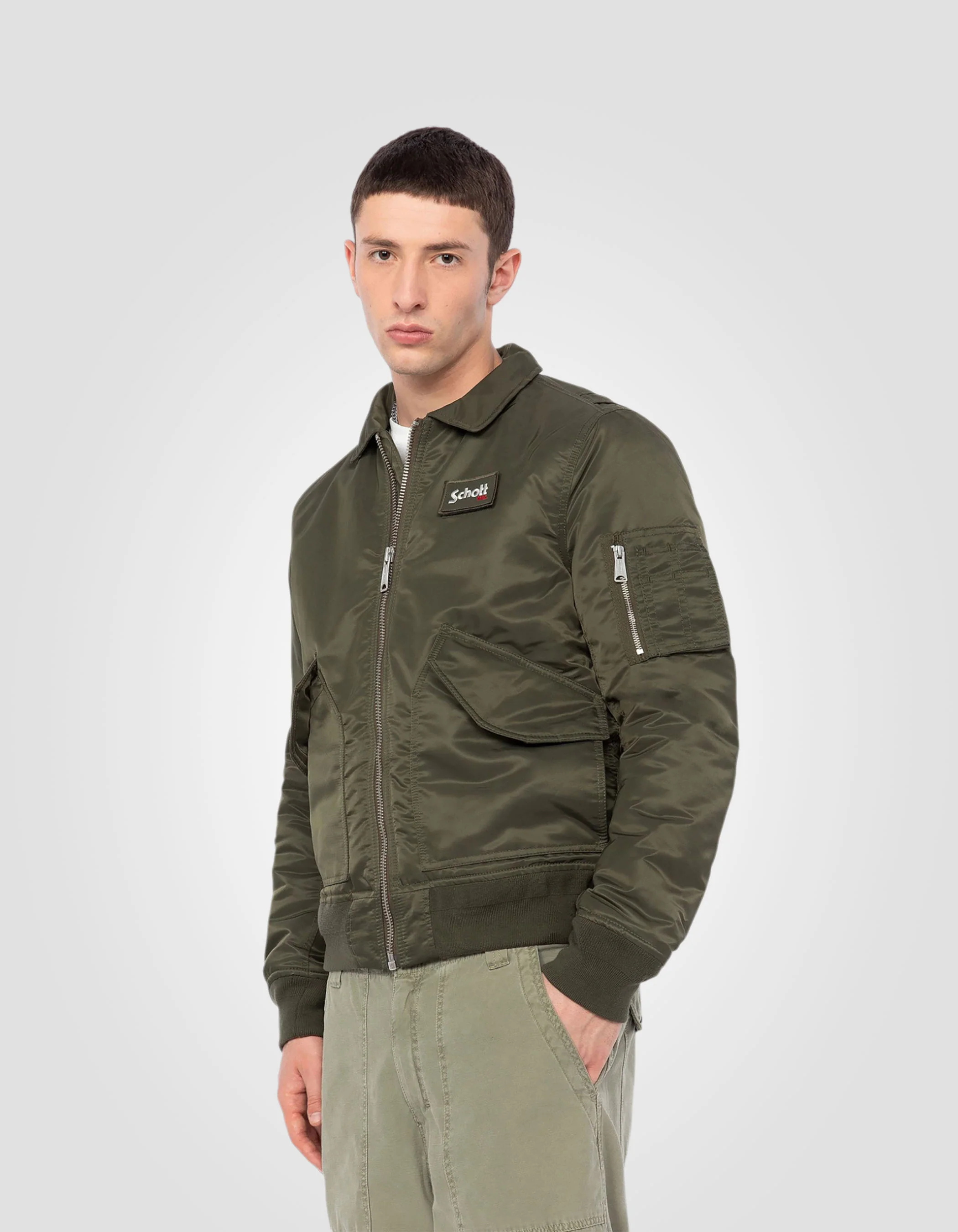 Bomber CWU army kaki en nylon recyclé, coupe ajustée