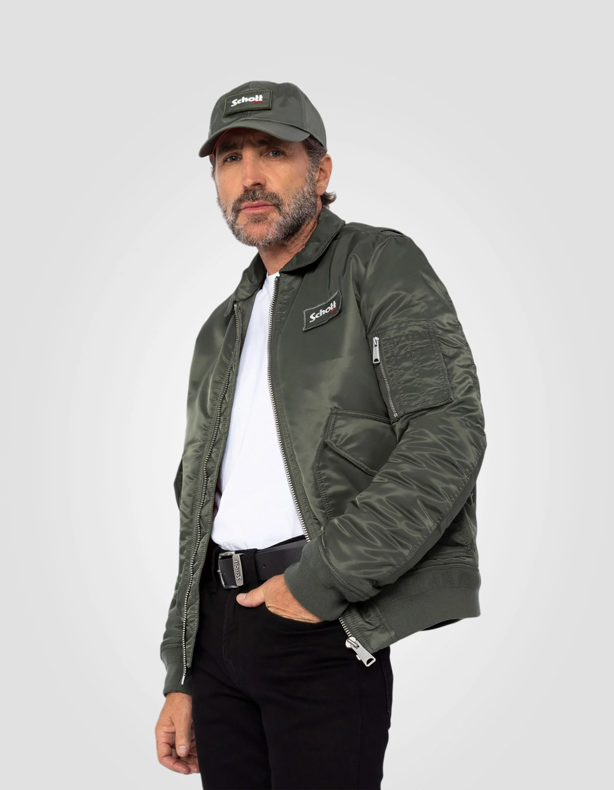Bomber CWU sage kaki en nylon recyclé, coupe ajustée