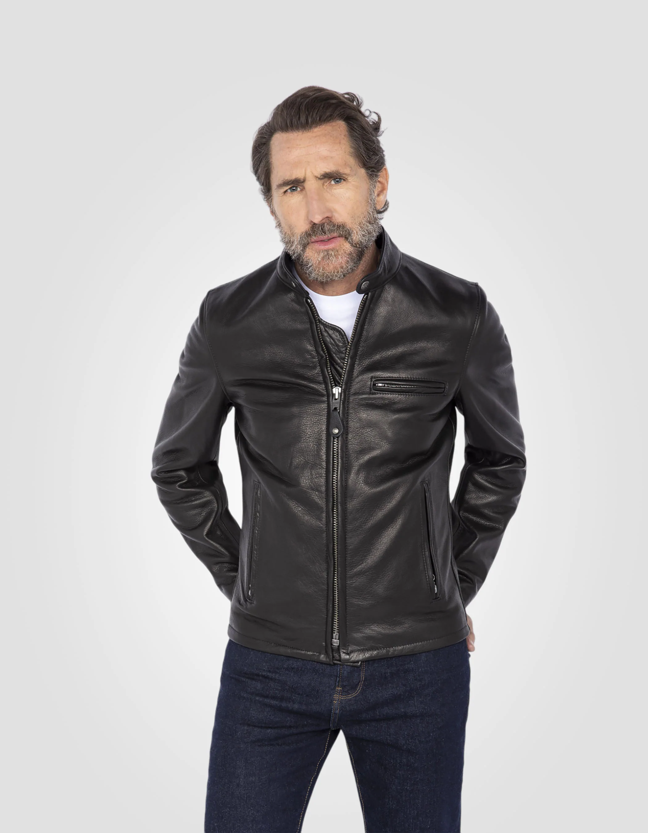 Blouson motard noir mythique USA, cuir de vachette