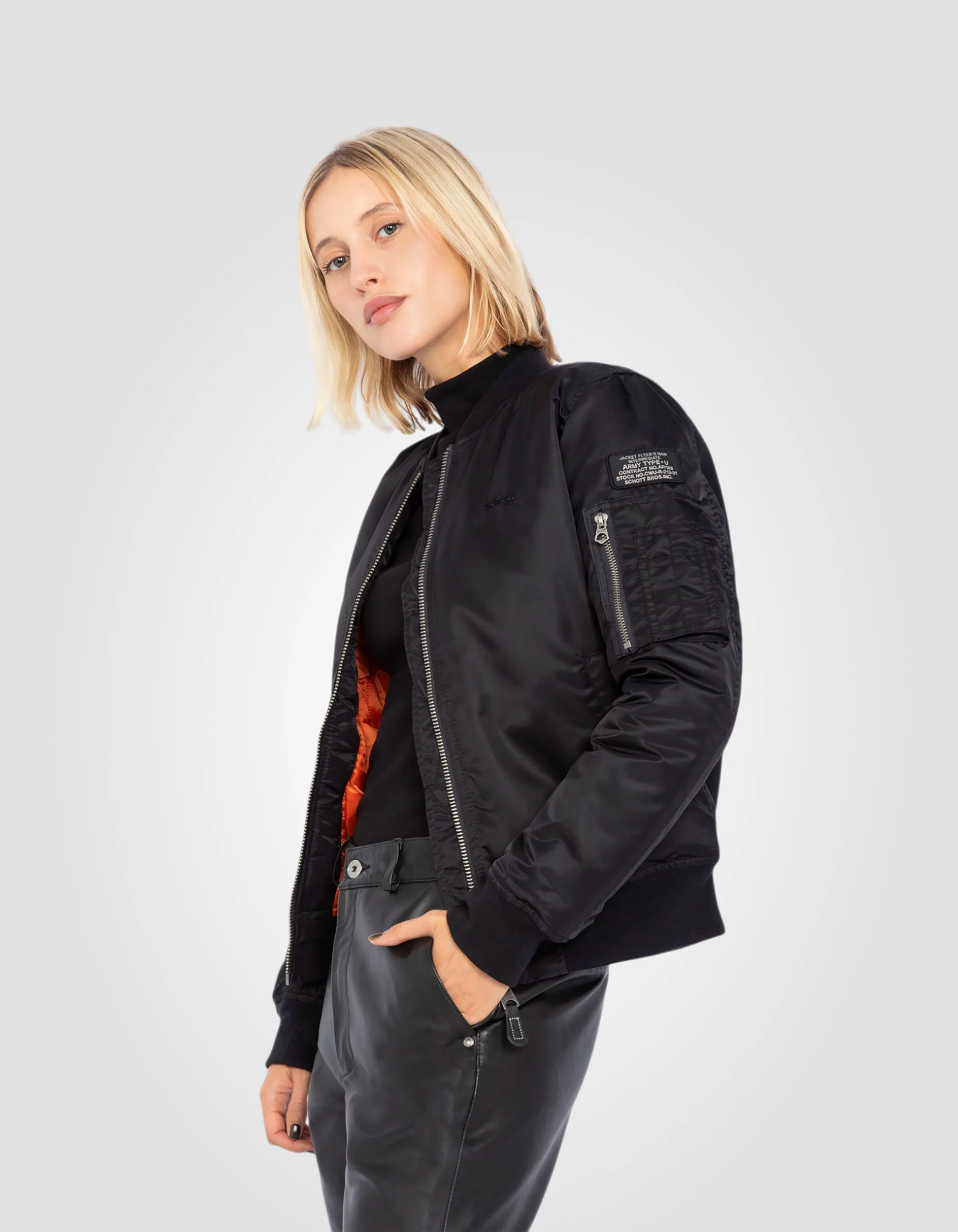 Bomber MA-1 noir en nylon recyclé, coupe ajustée
