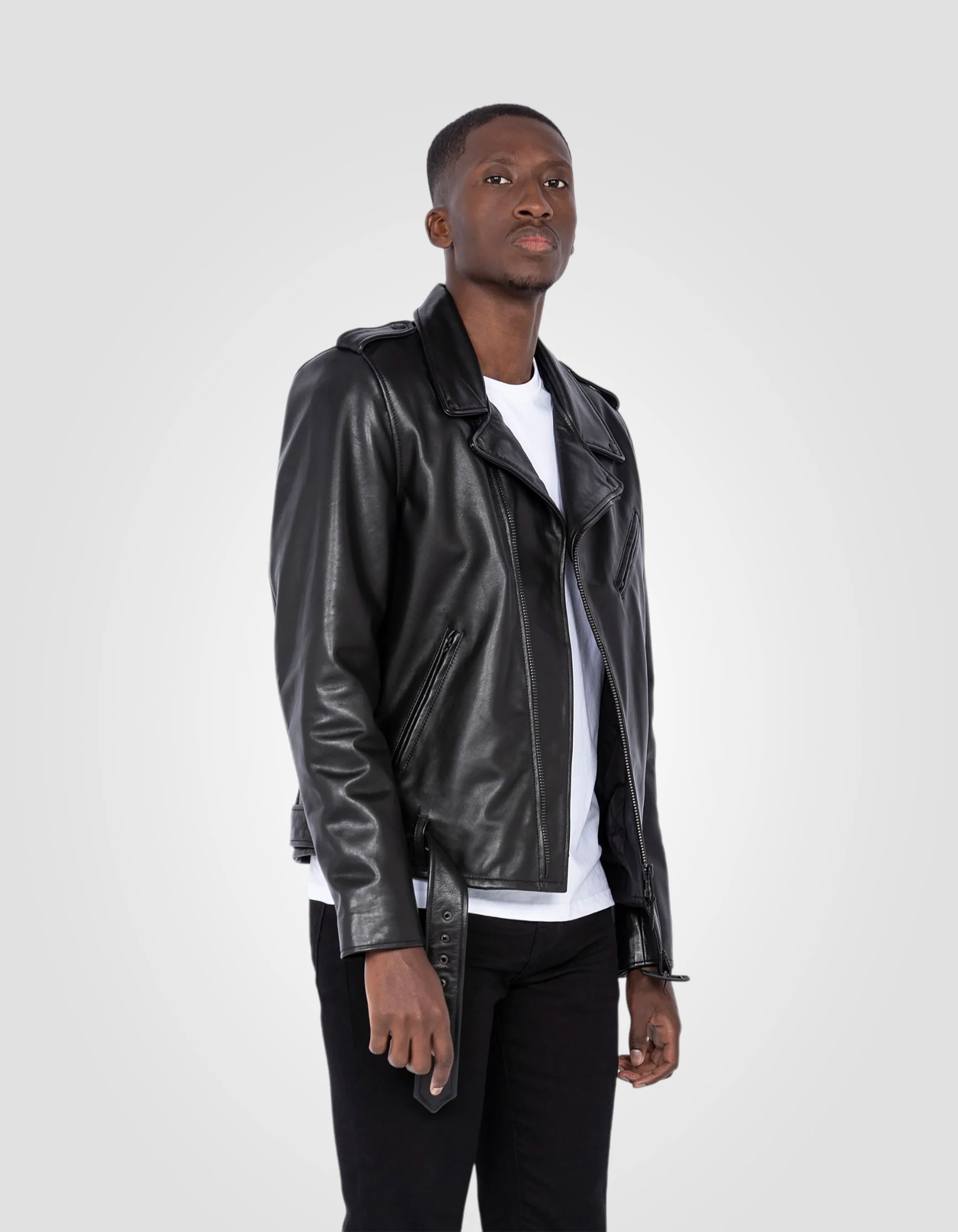 Blouson Perfecto® «full black» avec ceinture, cuir de vachette