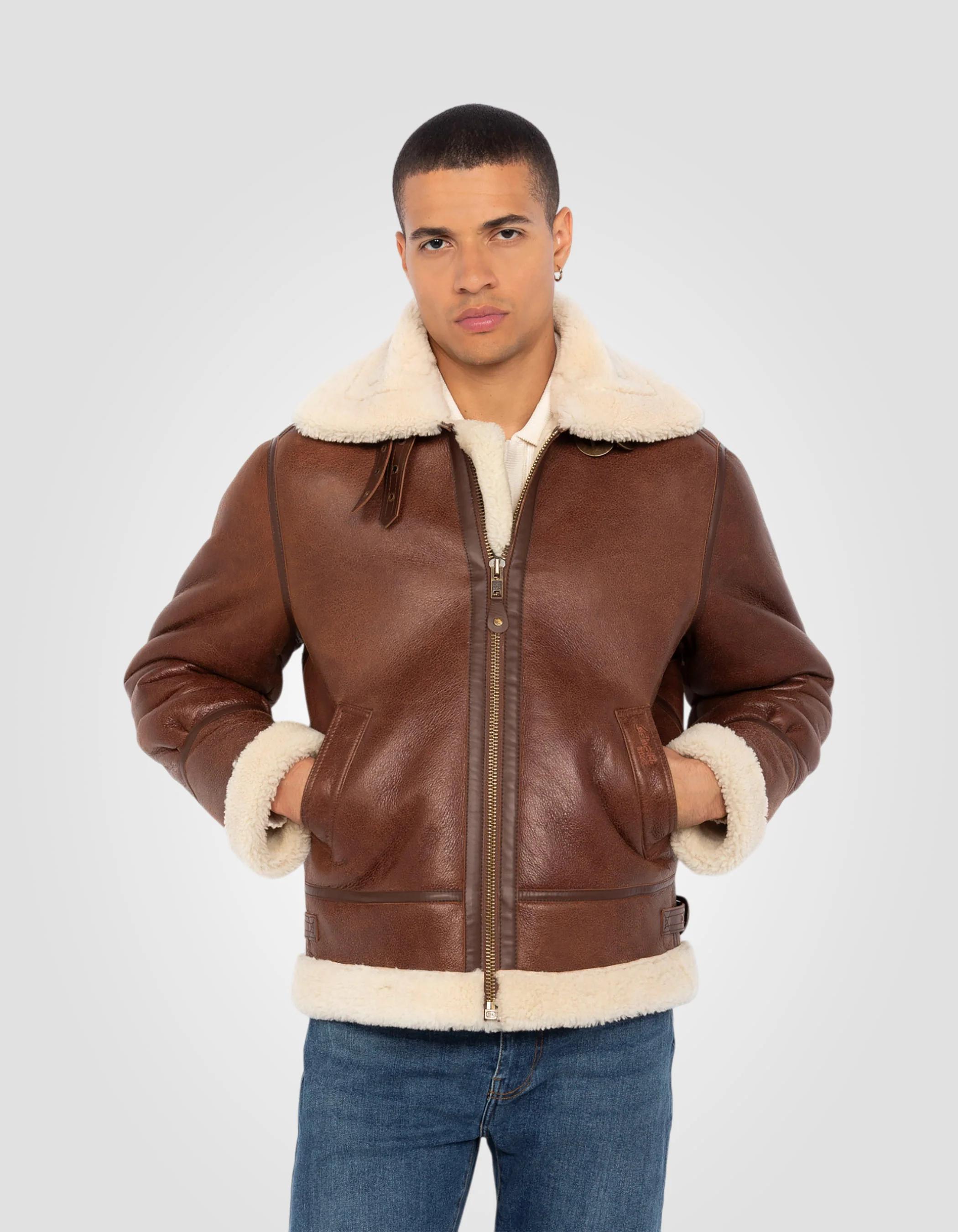 Ce bombardier B-3 fait directement référence à l'armée américaine. Il est conçu en peau lainée et doté d'un col généreux, qui permet une isolation hautement efficace. Son cuir à l'aspect vieilli lui donne une dimension vintage.