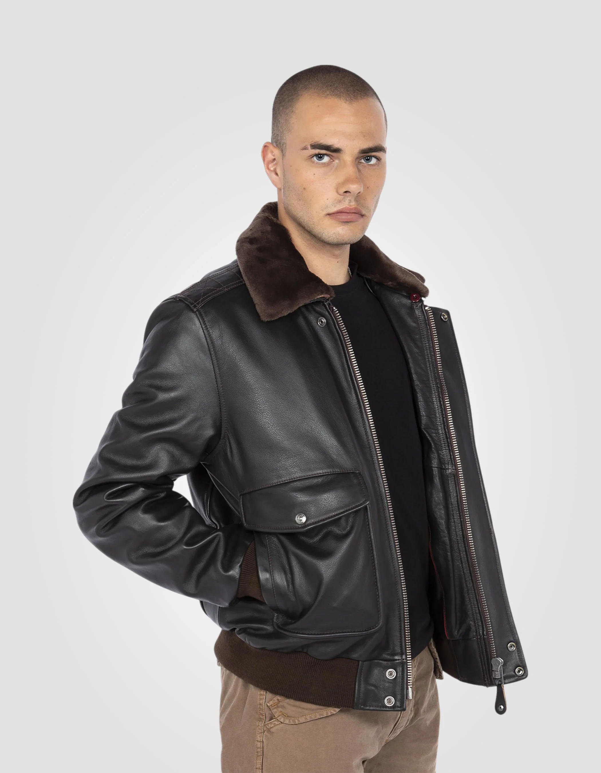 Blouson pilote type A-2 vintage marron, cuir de vachette