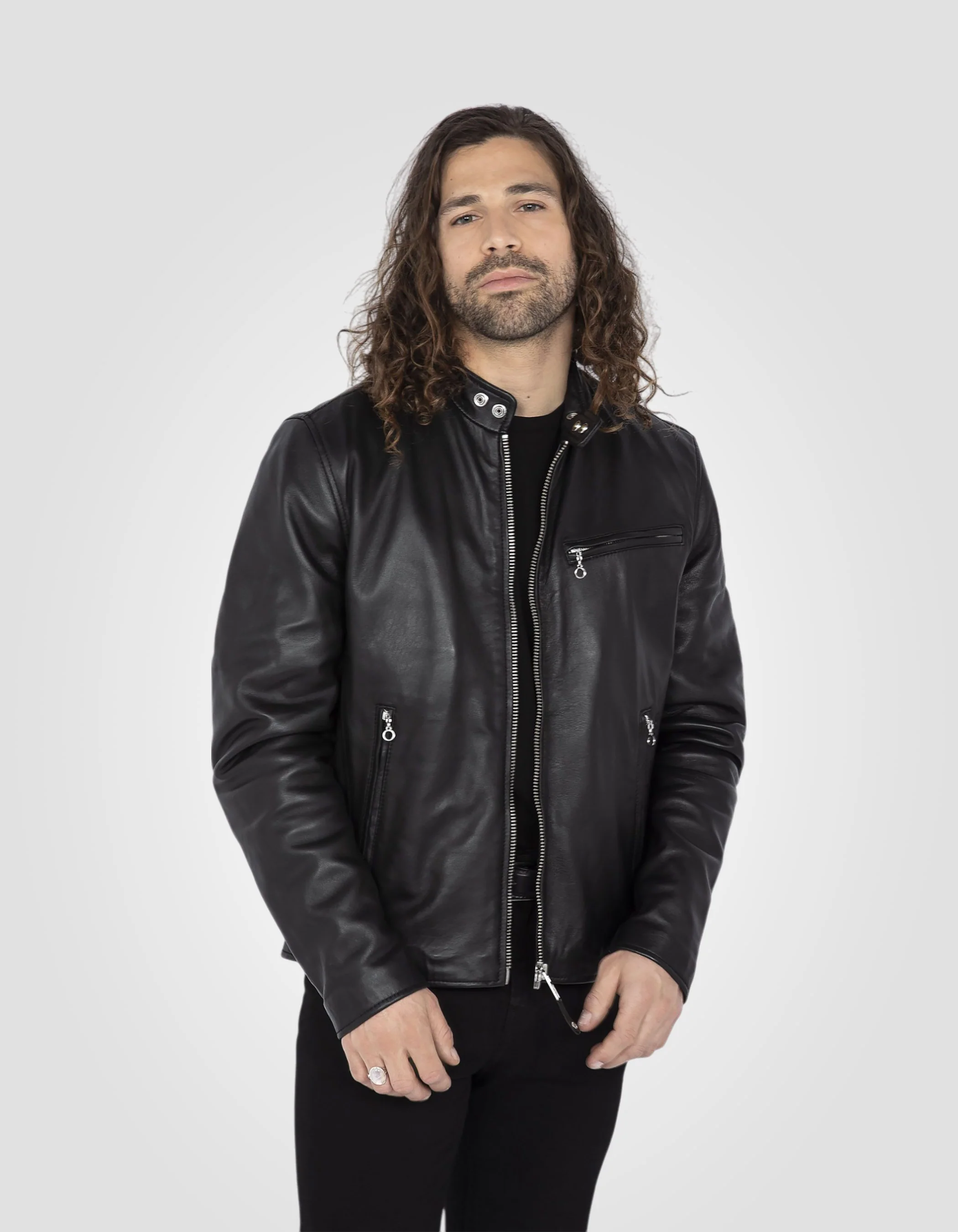 Figure incontournable du dressing masculin, ce blouson motard en cuir d'agneau vous apportera de la souplesse et une liberté de mouvement.