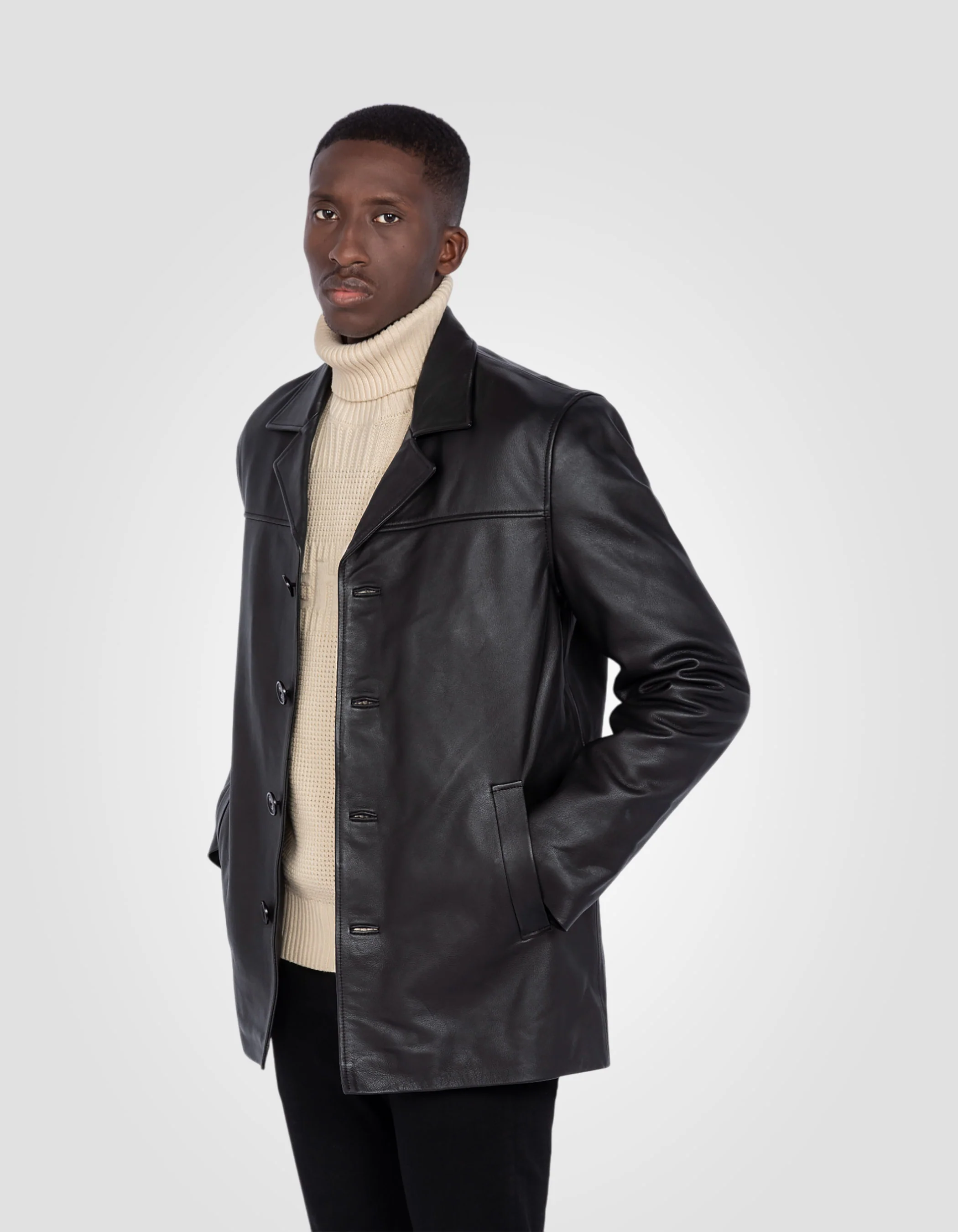 Cette veste en cuir épais à la coupe droite vous apporte un style sobre et élégant.