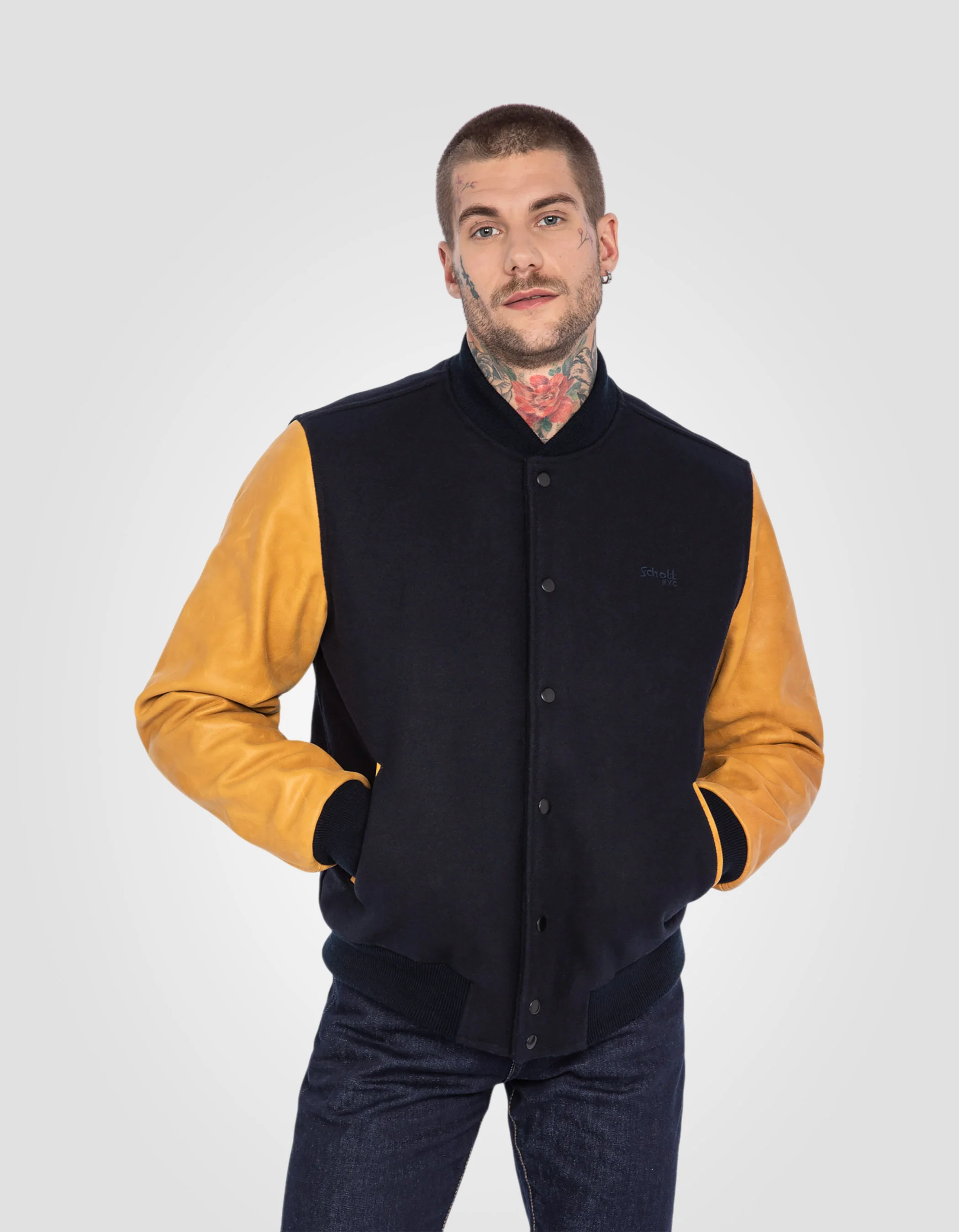 Le teddy est le blouson emblématique du style universitaire américain. Bi matière, son corps en laine vous tiendra chaud et ses manches en cuir de vachette apporteront robustesse et caractère à votre look.