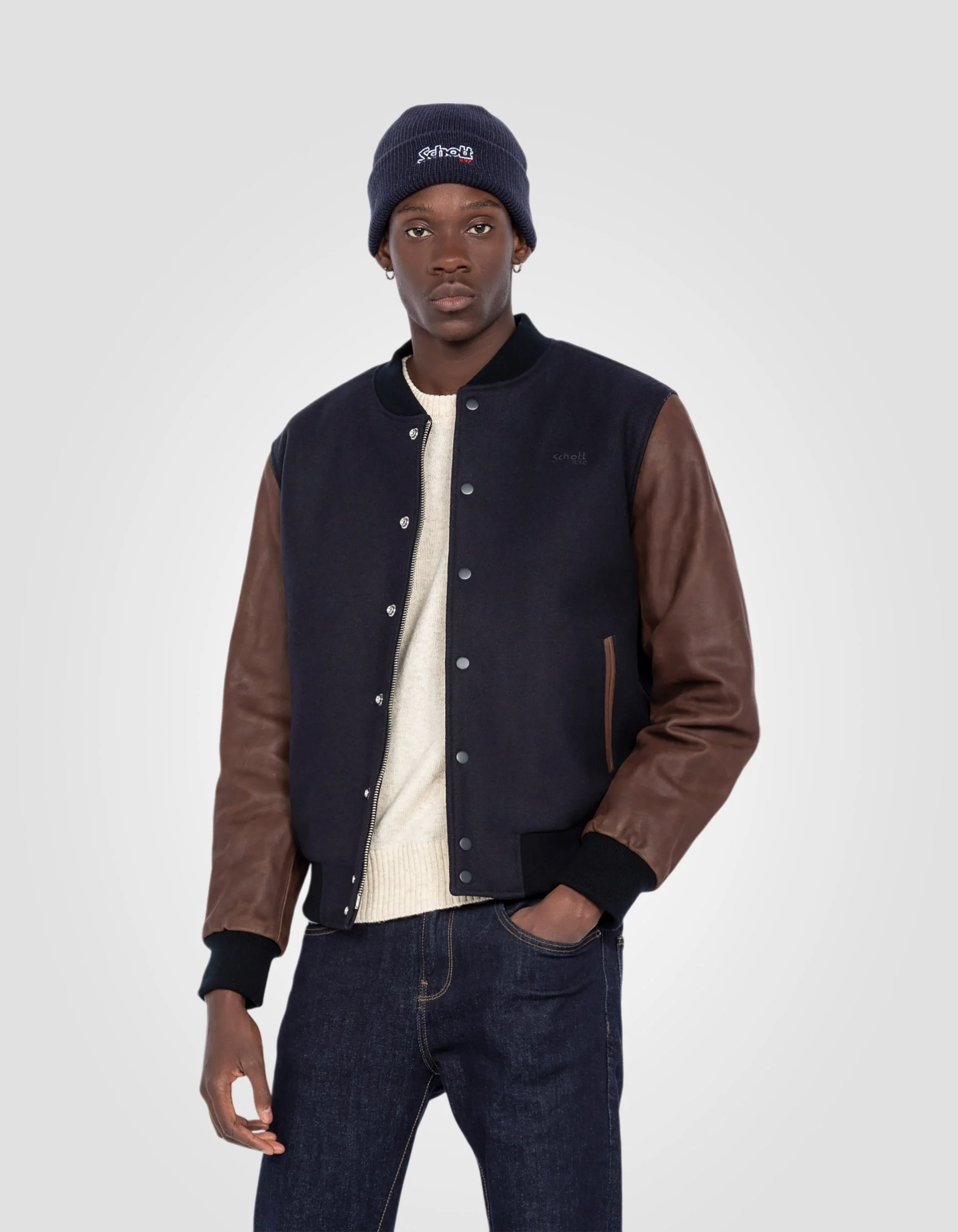 Le teddy est le blouson emblématique du style universitaire américain. Bi matière, son corps en laine vous tiendra chaud et ses manches en cuir de vachette apporteront robustesse et caractère à votre look.