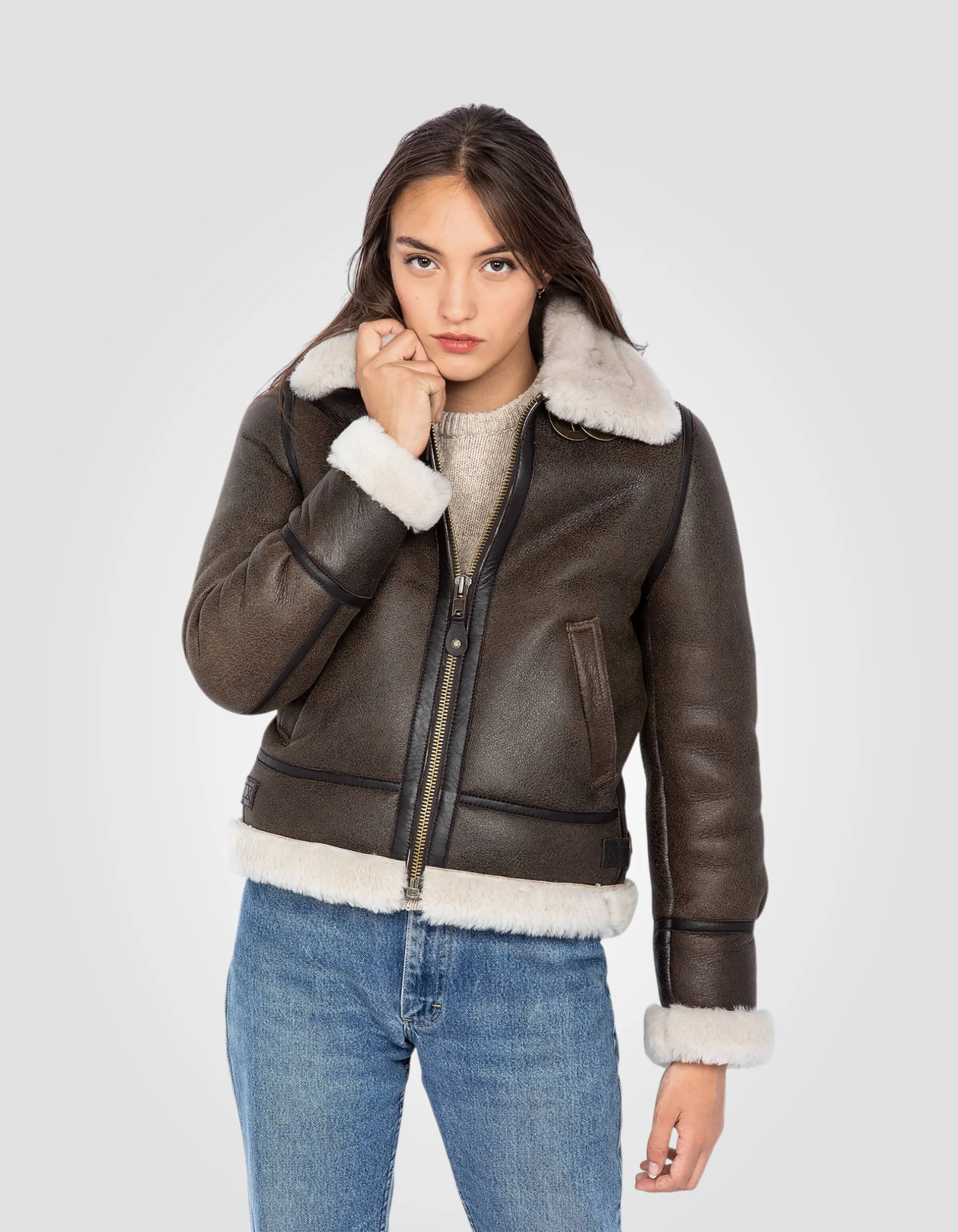 Blouson bombardier B-3 marron foncé, cuir de mouton