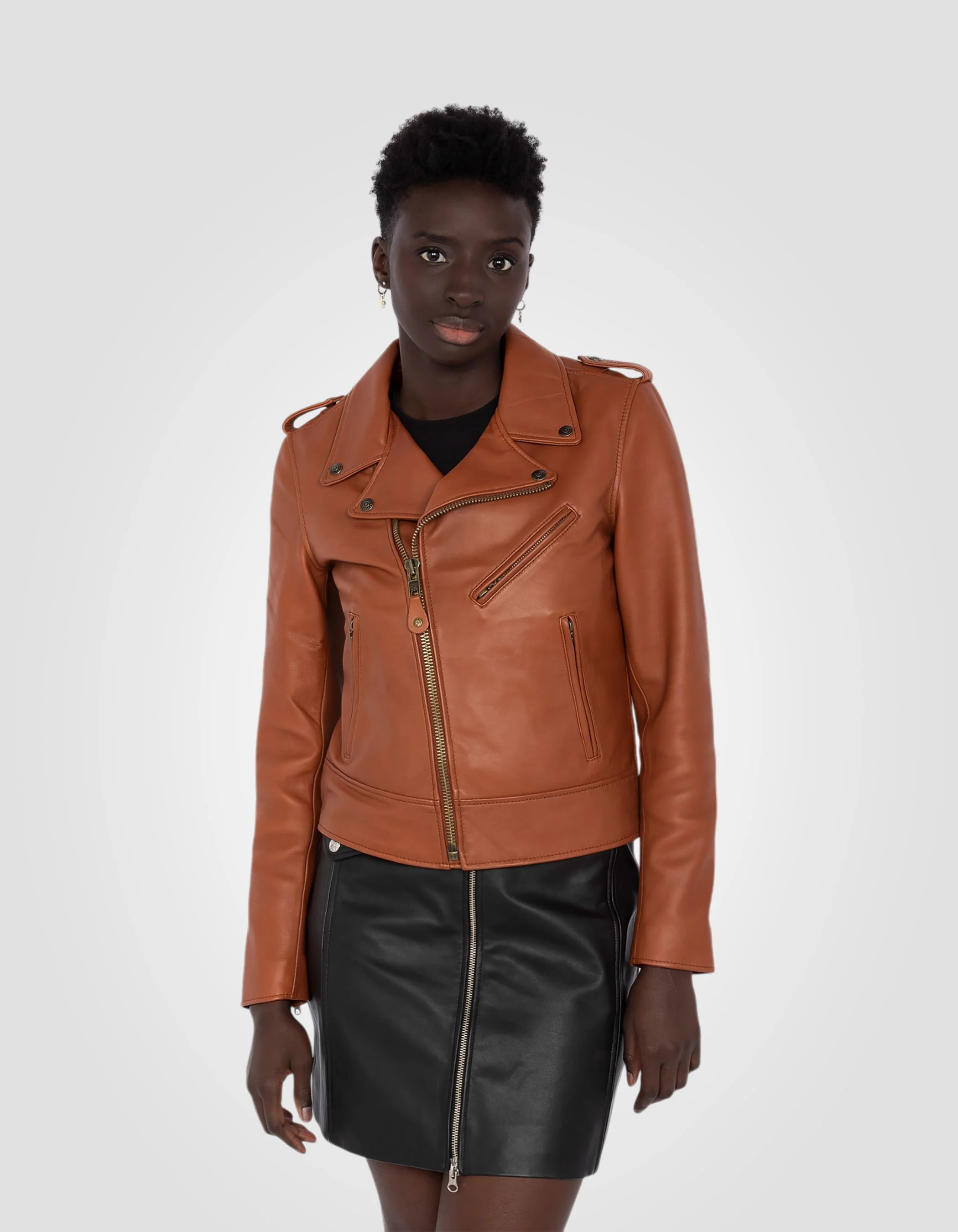 Blouson Perfecto® cognac, cuir d'agneau