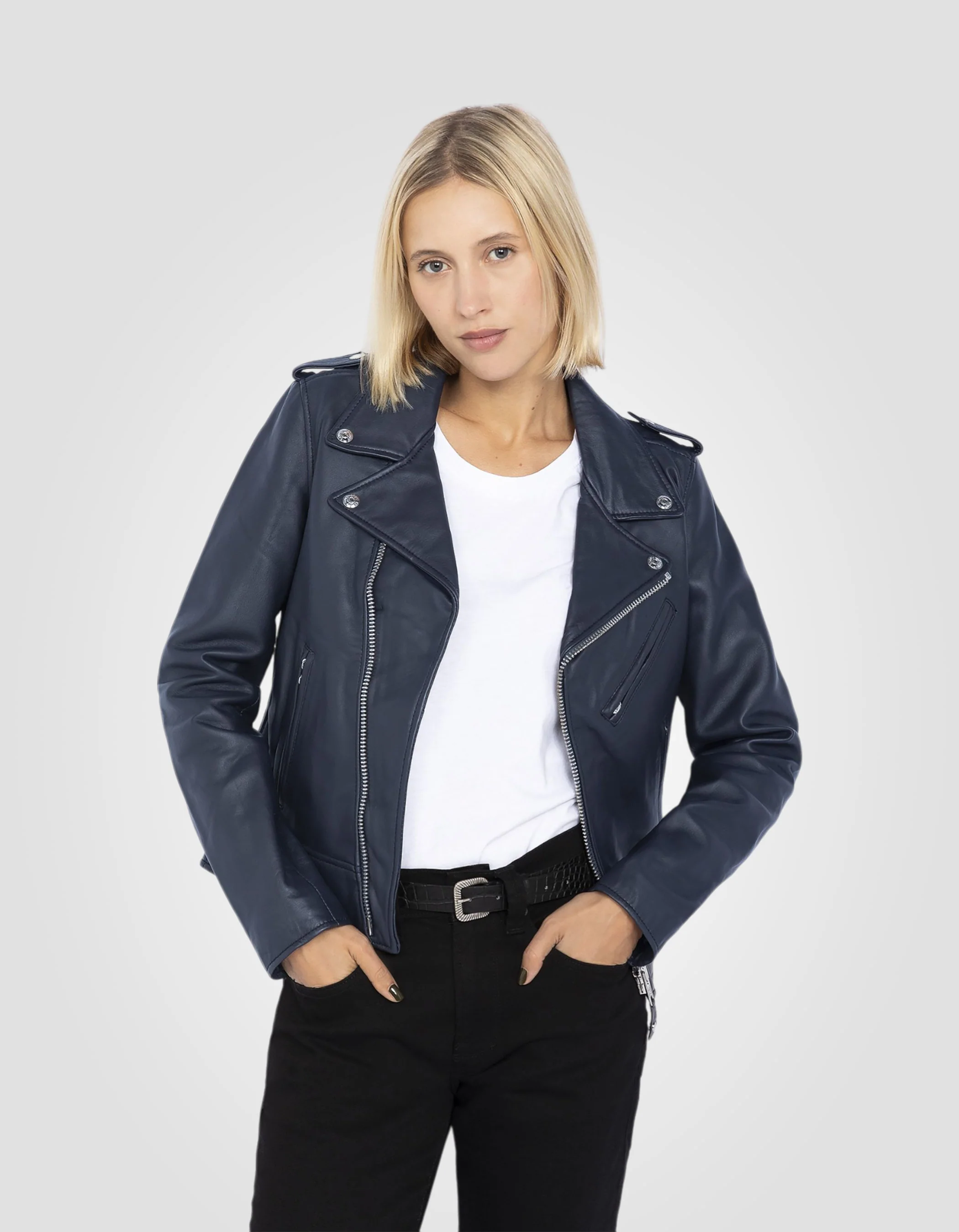 Blouson Perfecto® bleu marine, cuir d'agneau