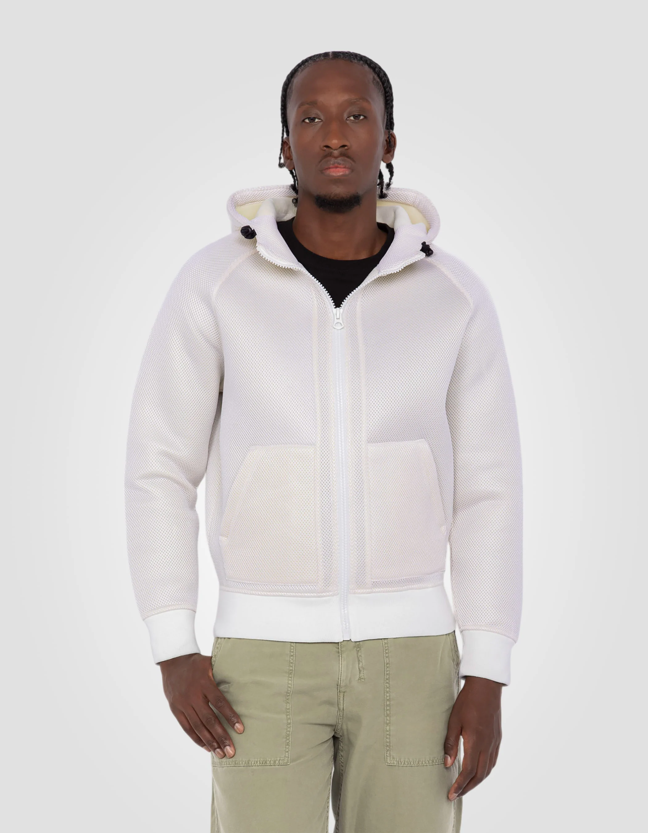 - Capuche fixe avec cordon de serrage