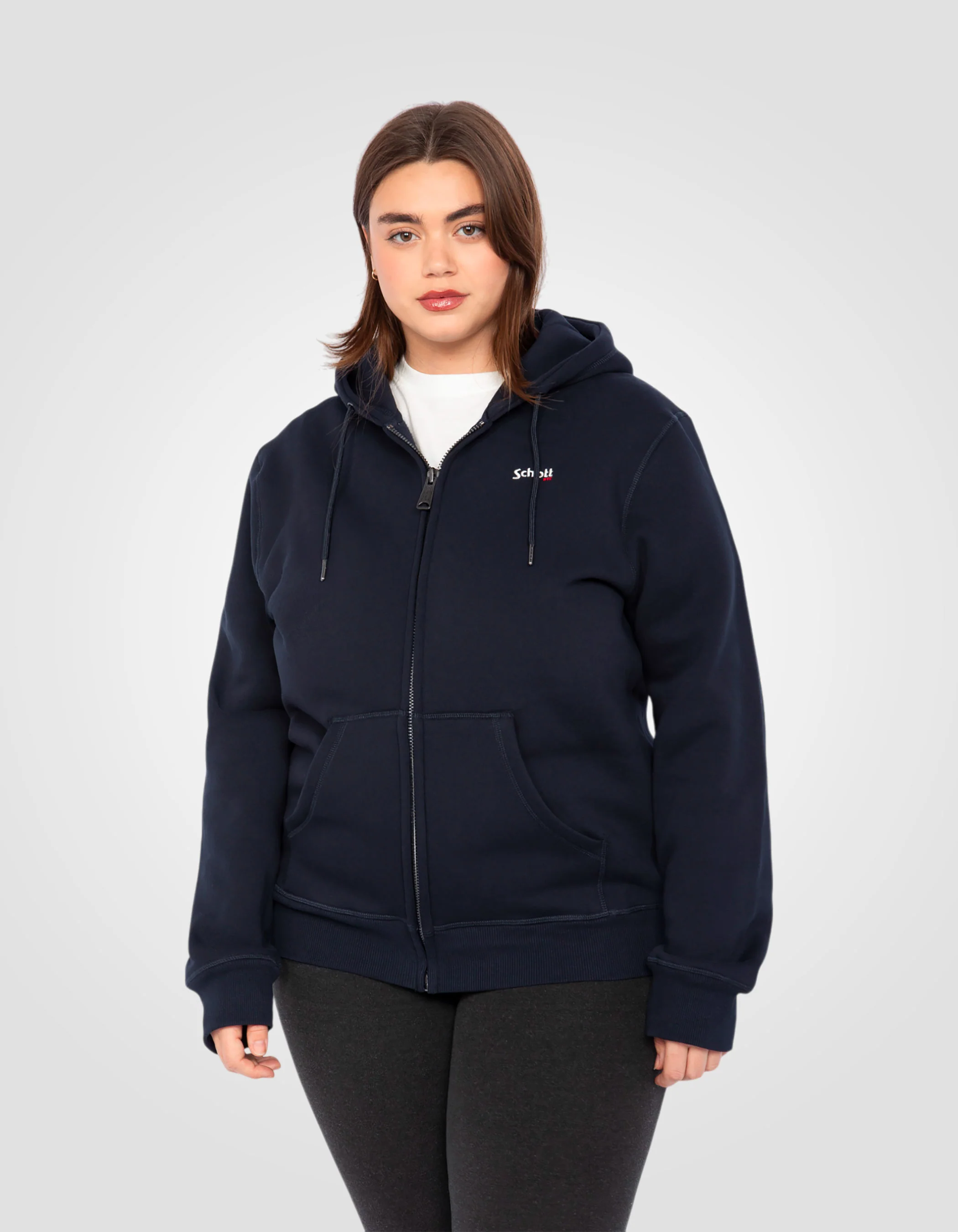 Sweatshirt zippé bleu marine à capuche en molleton épais, grande taille