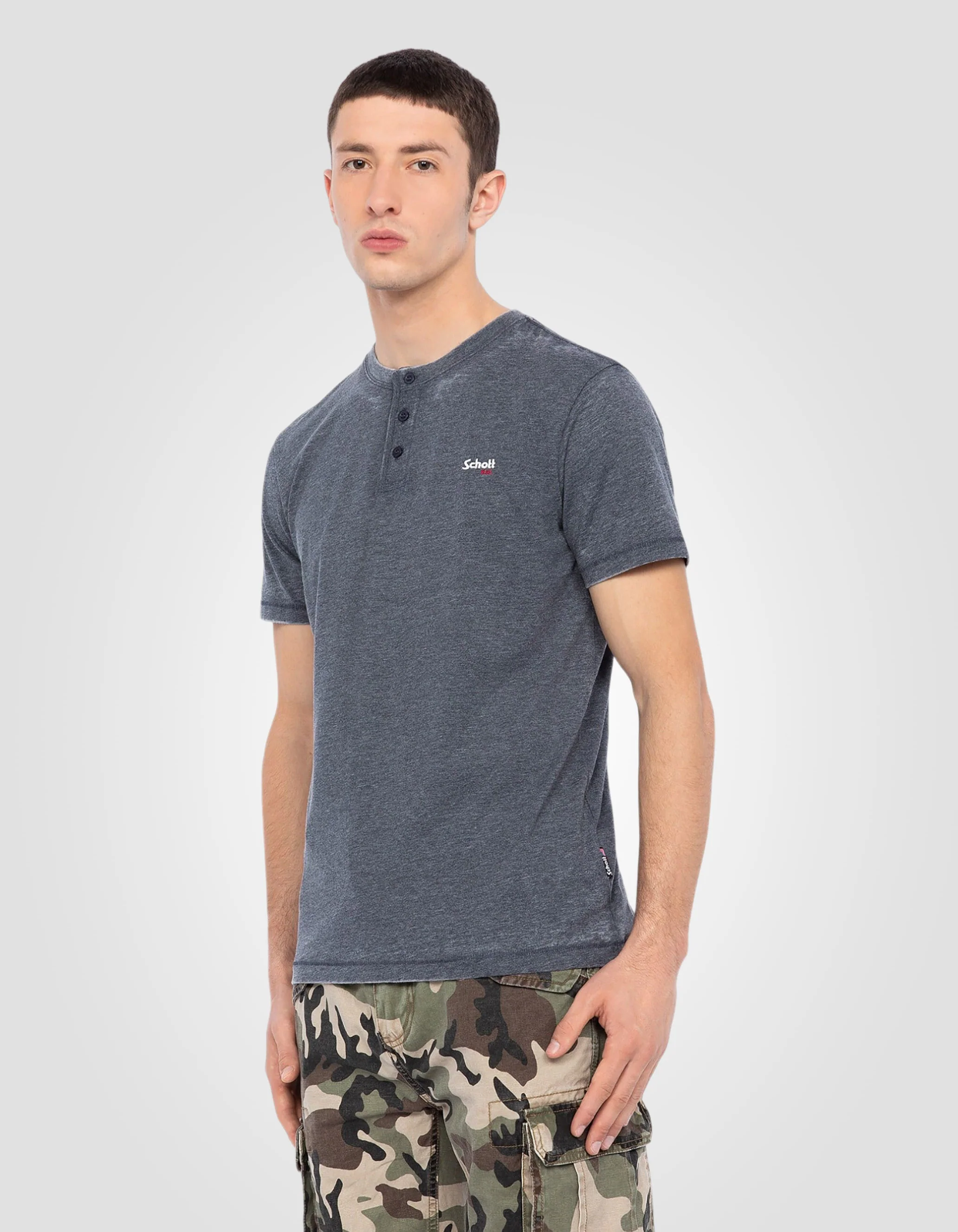 T-shirt col tunisien bleu marine effet délavé